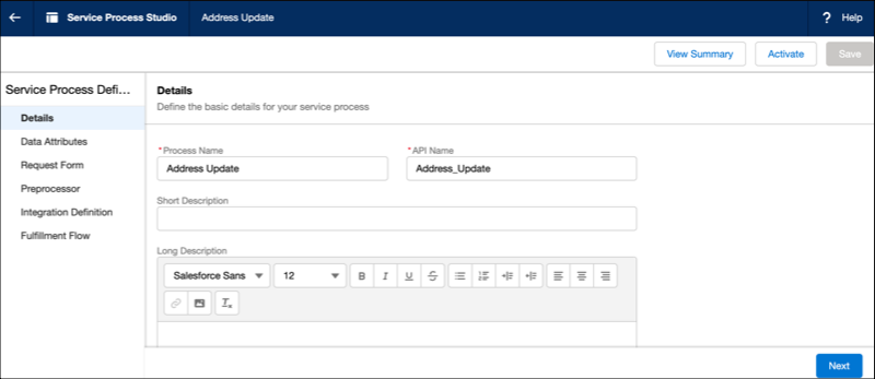 Users can now create a custom service process for Manufacturing Cloud within the Service Process Studio. This means customer service reps will be able to launch a service process while working on a customer request and follow that process throughout the entire case lifecycle. The Service Process Studio helps users define data attributes and inputs, add business logic, and configure any needed integrations to link with outside systems.